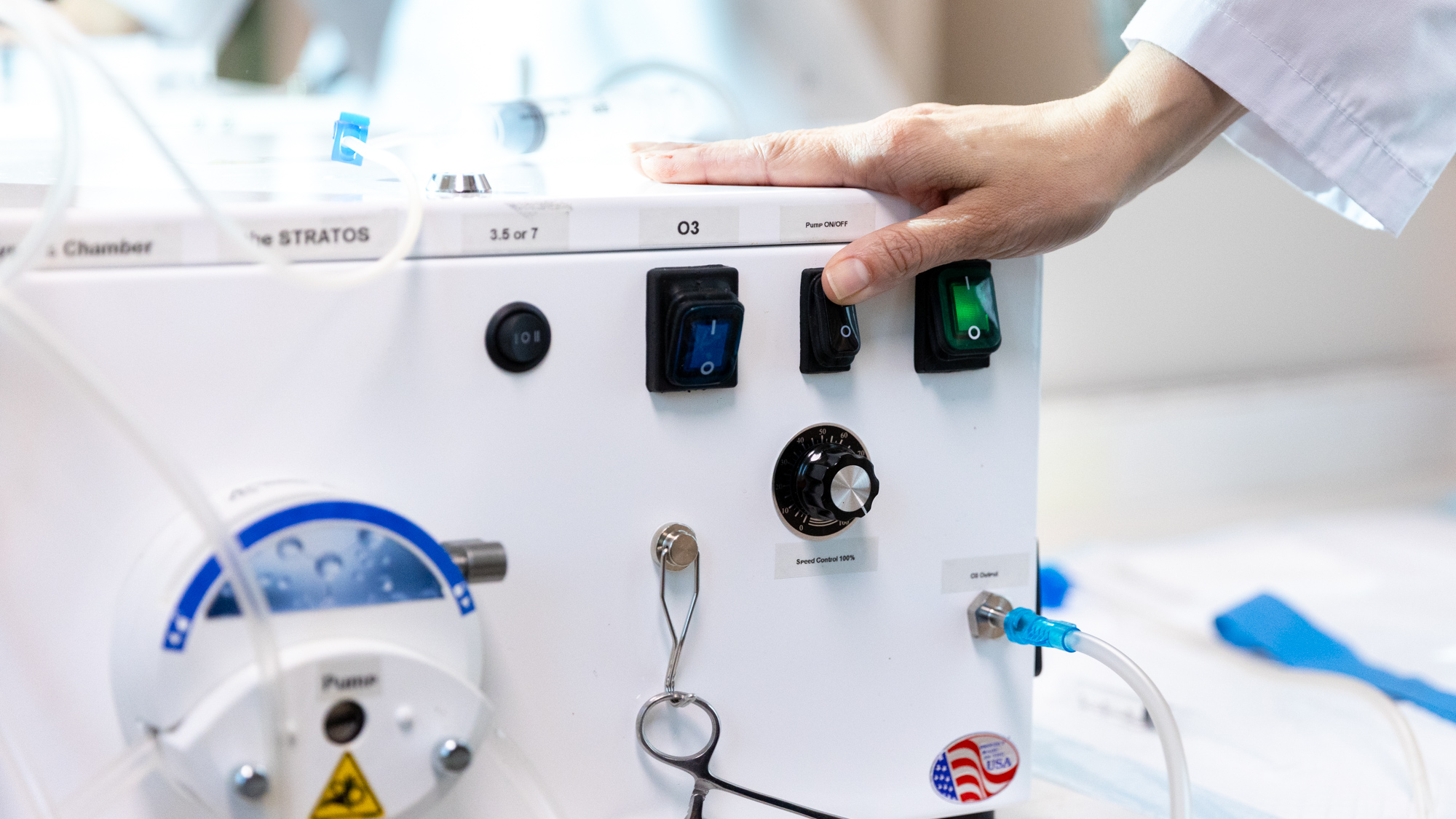 Unlike other EBOO devices, STRATOS strictly regulates ozone concentration to remain within proven therapeutic ranges and operates with a controlled pump speed for optimal safety. It uses a certified ozone-safe filter to prevent contamination or degradation during treatment.